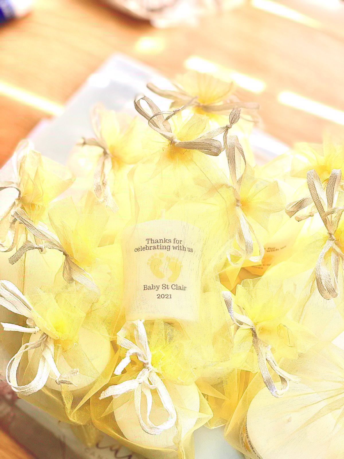 These are Baby Shower favour candles to thank your guests for coming to celebrate your baby girl or baby boy or twins, triplets etc Printed personal message on candle " thank you for coming to my baby shower "your name" and your preferred date "03.03.2024" in beautiful mini organaza bags.